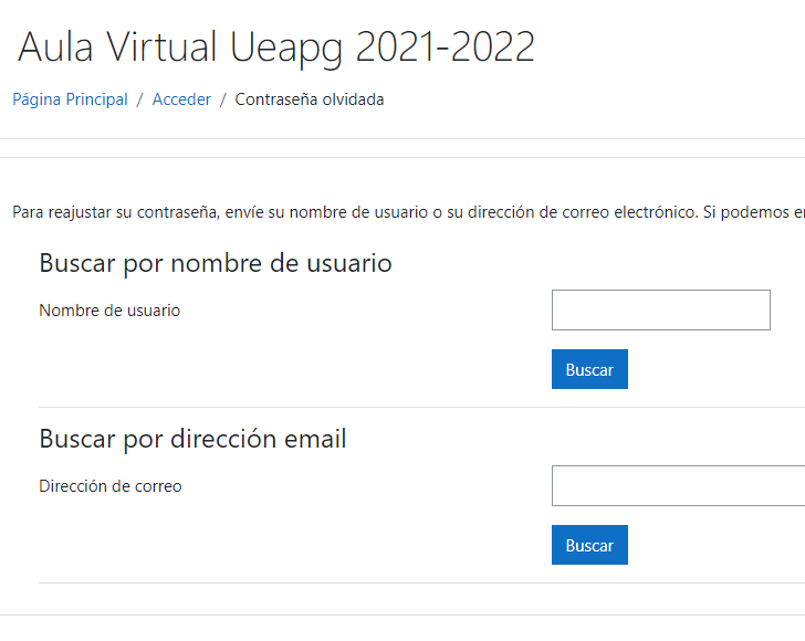 2.- Debes rellenar los datos que te pide el sistema colocar tu dirección electrónica de estudiante o nombre de usuario y listo la contraseña se ha cambiado.